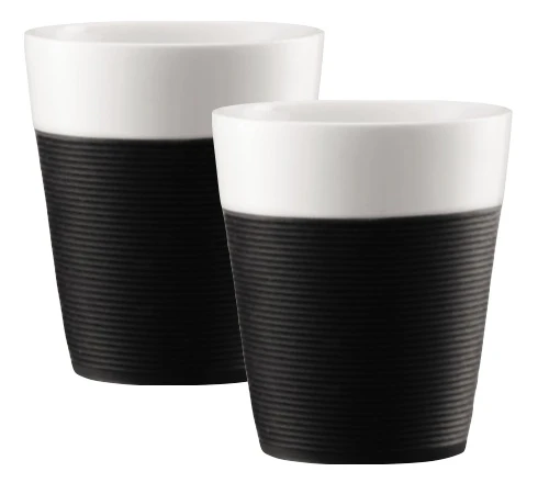 2 tasses en porcelaine avec bande silicone noire Bistro